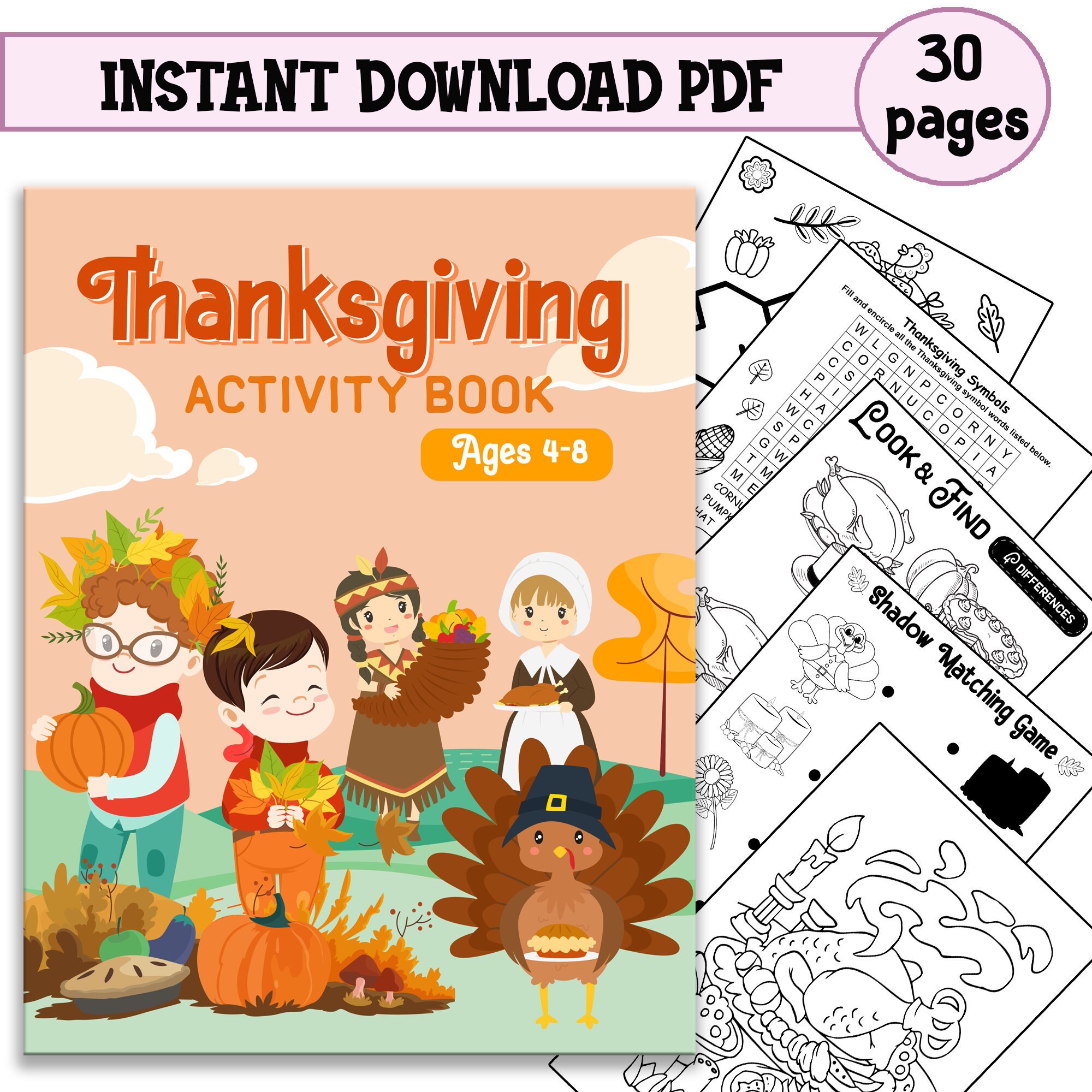 Thanksgiving Activity Book For Kids 4 8 Digital Download Etsy Australia